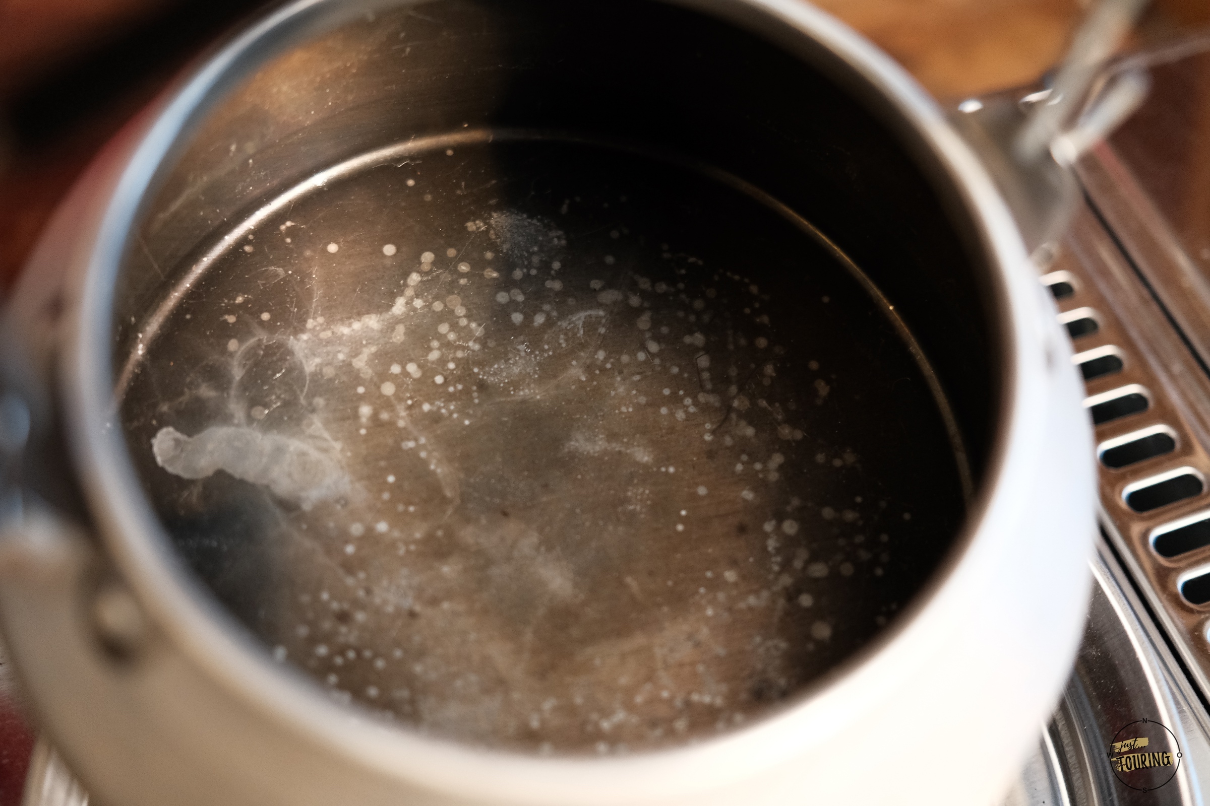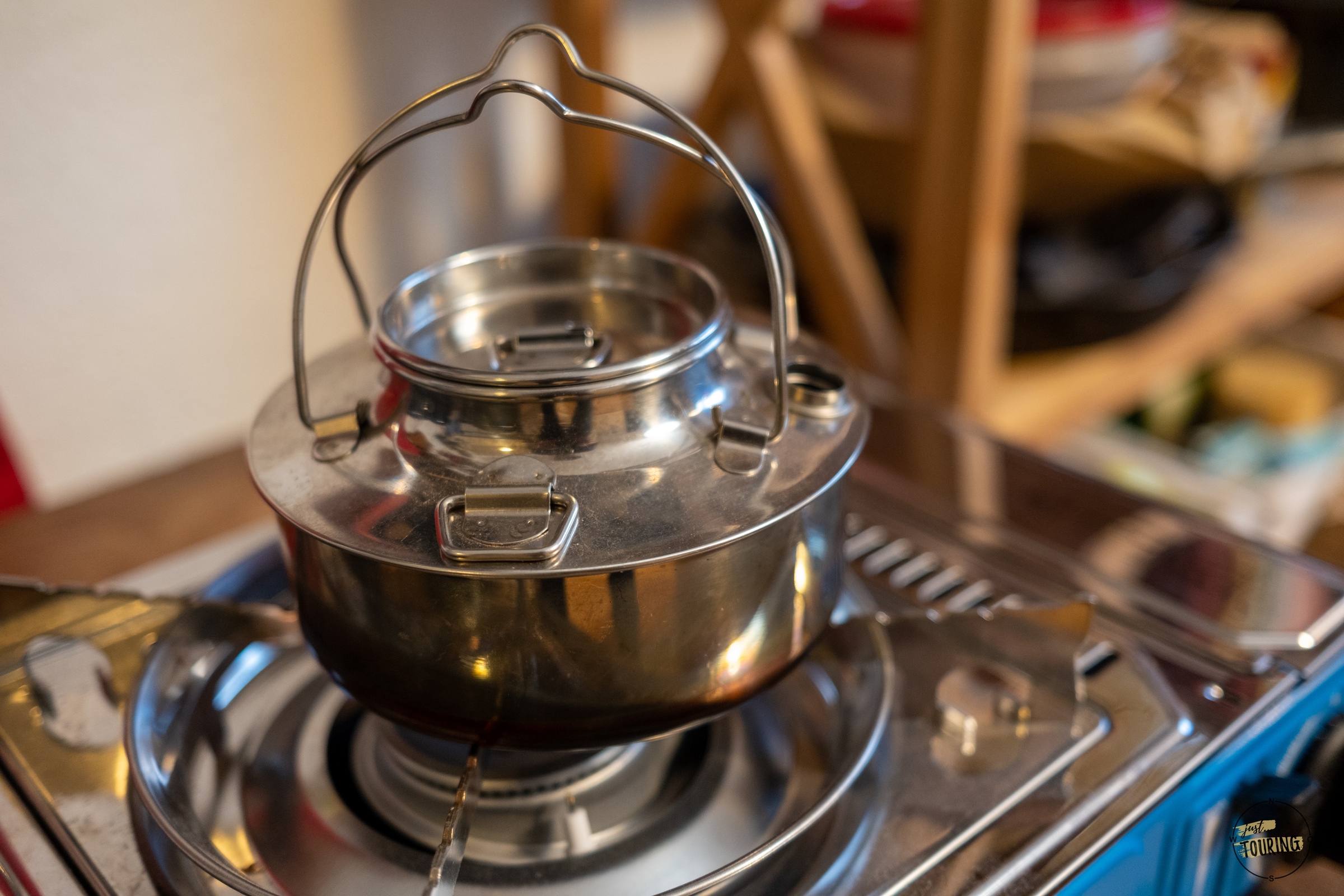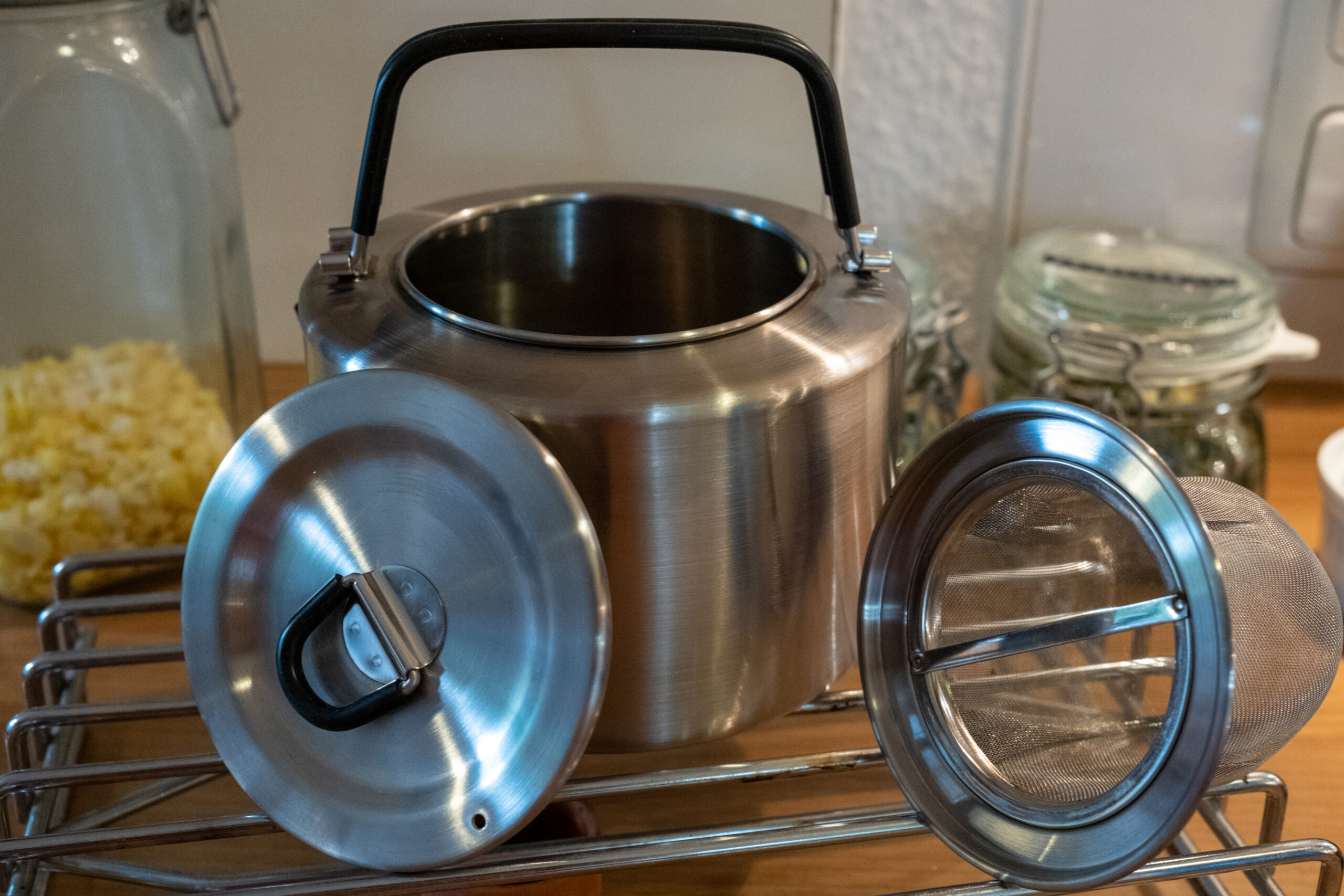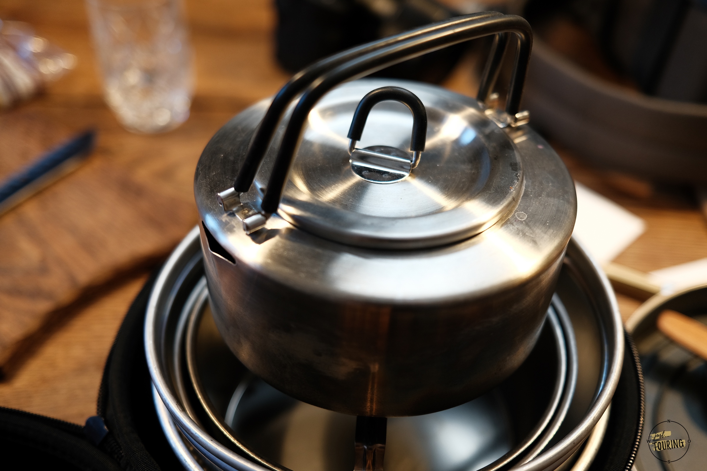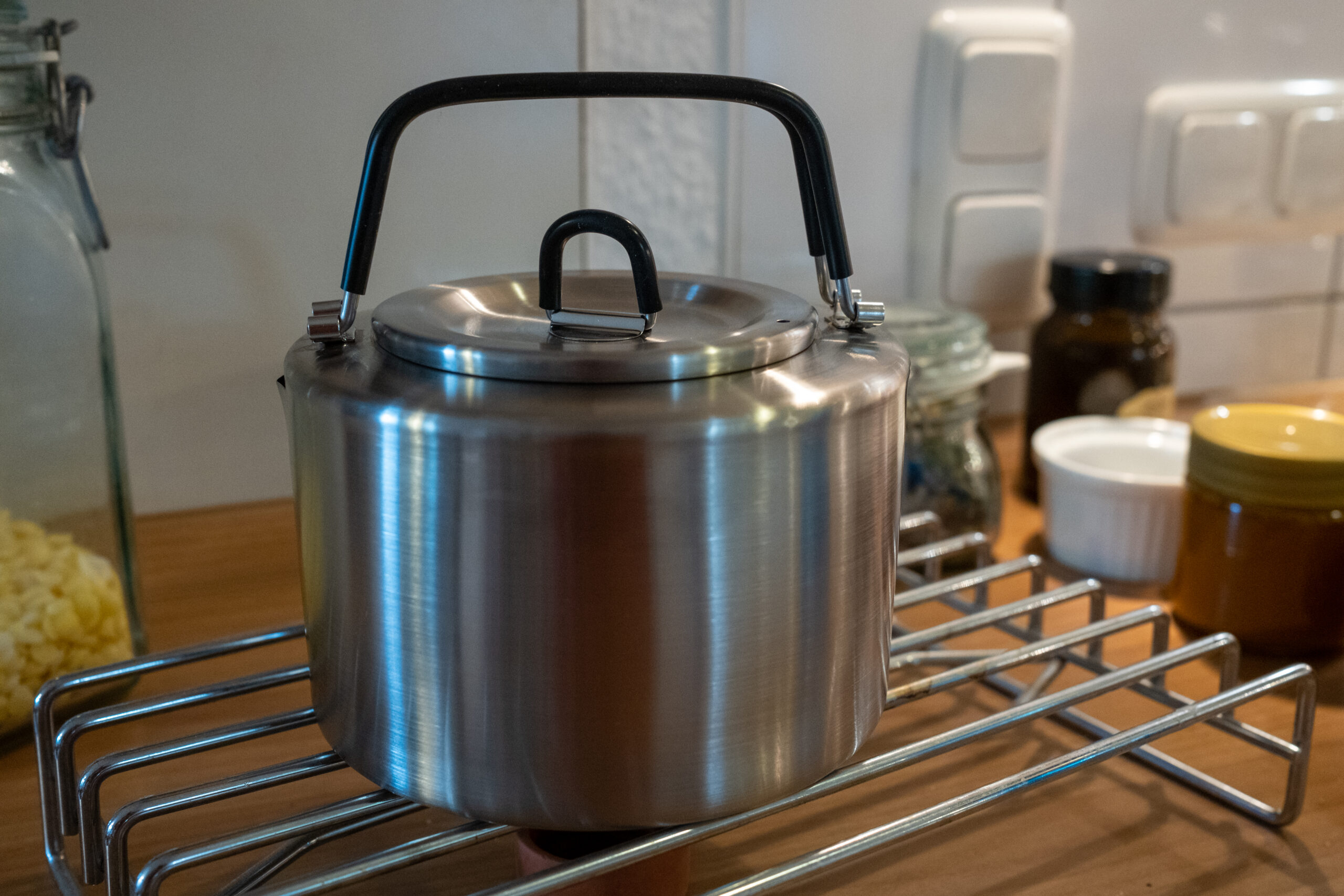 Unseren Puck-Kessel für den täglichen Gebrauch unterwegs. Er ist aus Edelstahl mit 3 Litern Fassungsvermögen. Den lieben wir einfach! In gewisser Hinsicht war er ein wenig „Schuld“ an unserer Kesselleidenschaft. 🙂