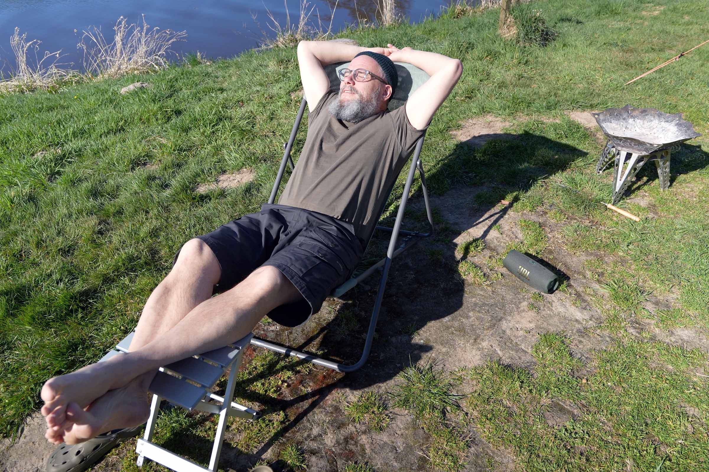 Am Tisch gibt es ein paar Abzรผge, da kรถnnte die Sitzflรคche so 5cm hรถher sein. Aber es geht gut und man kann damit auch prima am Tisch essen oder arbeiten. Am Lagerfeuer sitzen, darin lesen oder einfach nur flรคzen: Richtig gut. Lรคnger z.B. in der Sonne liegen geht am besten mit einem kleinen Hรถckerchen. Davon haben wir eh immer zwei dabei. Passt super!