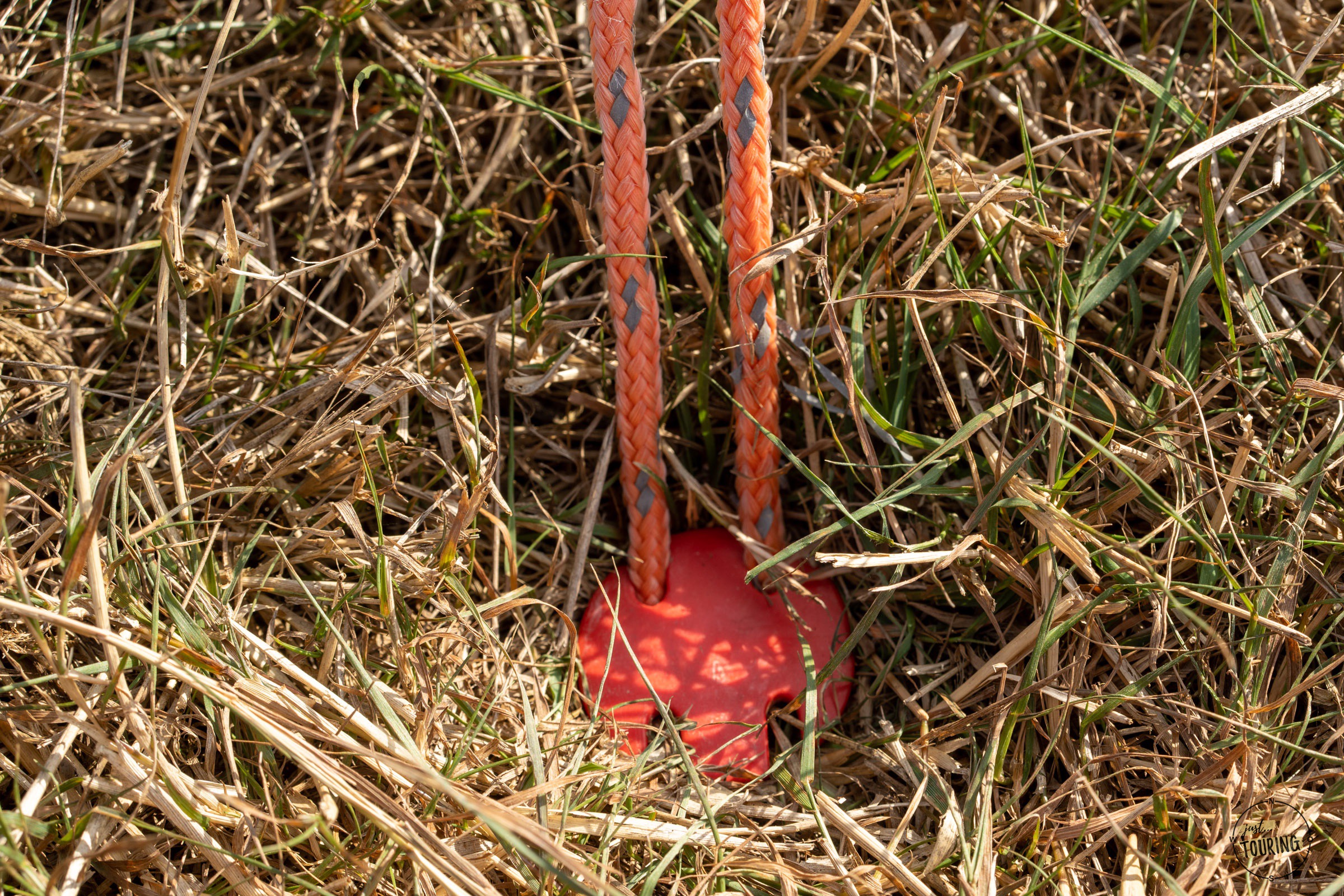 Es gibt sie auch aus recyceltem Plastik (das sind die Schwarzen), was die Bilanz natรผrlich noch besser macht. Ach so, sollten sie mal verbiegen – kein Problem. Einfach fรผr 5 Minuten bei 160 Grad in den Backofen legen und sie nehmen wohl wieder ihre Ausgangsform an. Mussten wir jetzt noch nicht machen, aber wir glauben einfach mal SwissPiranha, dass das stimmt. Wir ersetzen jedenfalls nach und nach unsere Heringe durch diese Flachen. Als erstes haben wir den Hering ย vom Tarp (der ist direkt neben unserem Tritt) ersetzt, da sind wir besonders oft (nachts, ihr wisst schon…) draufgetreten.