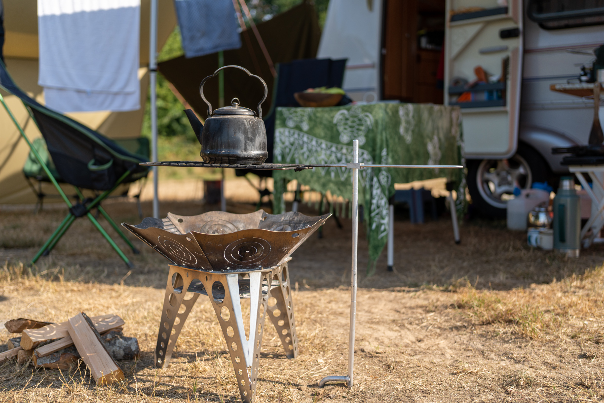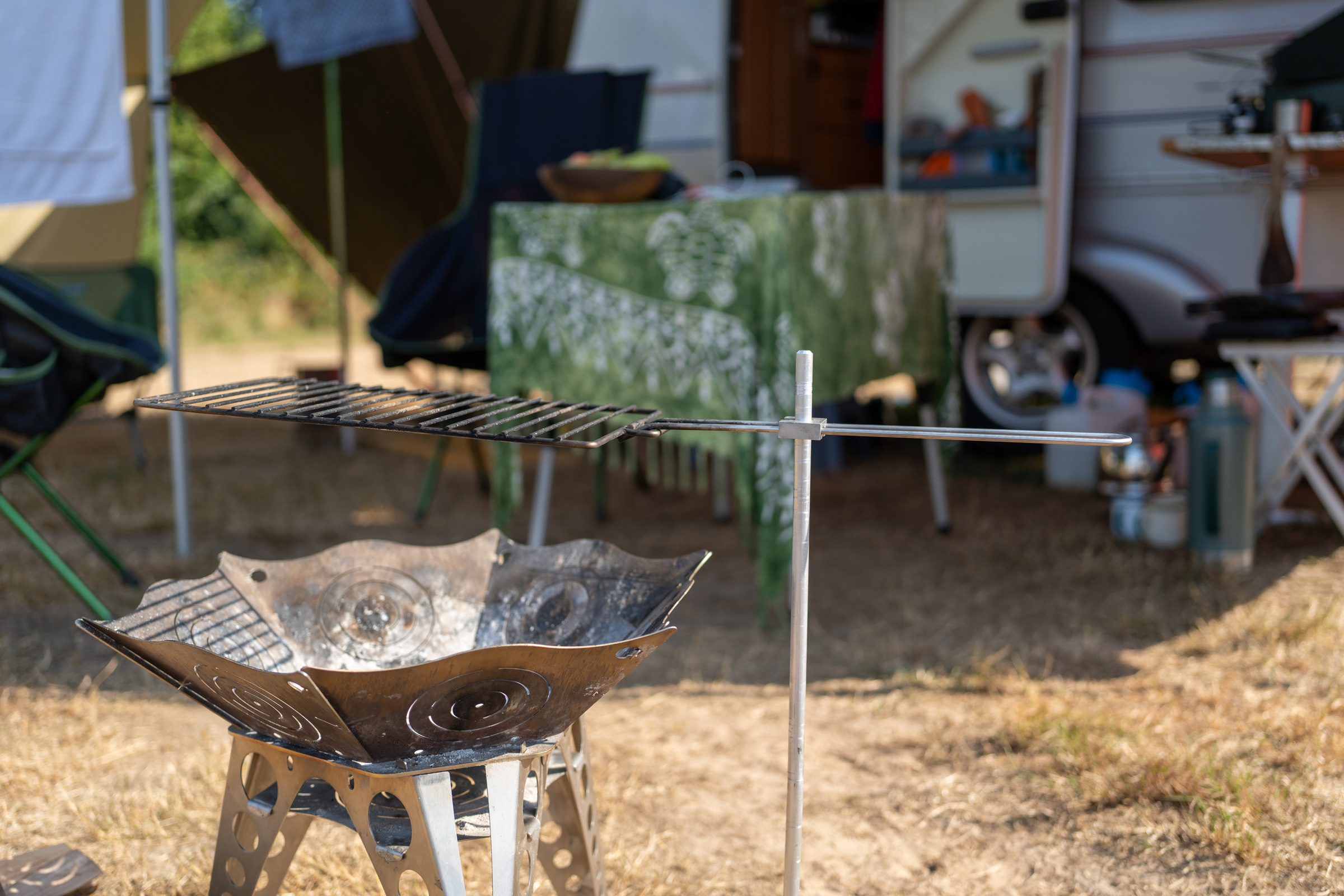Auf dem Platz in Saignelรฉgier (wo wir zwei Monate waren – hier geht’s zum Blogartikel) gab es ja รผberall Feuerstellen und Lagerfeuer war erlaubt. Gefรผhlt an jedem zweiten Lagerfeuer sahen wir so einen Stab im Boden. Was ist das? Also sind wir nach einiger Zeit, als die Neugier รผberhand nahm, zum Nachbarn rรผber und haben mal wacker gefragt. „Das? Das ist der Brรคnde-Grill von der Stiftung Brรคndi! Kennt ihr den nicht?“ ย Nein den kannten wir nicht. Wir erfuhren, dass er von einer Stiftung vor 35 Jahren erfunden wurde. In der Stiftung Brรคndi wohnen und arbeiten Menschen mit kรถrperlichen und geistigen Behinderungen – Inklusion ist das Stichwort. Und unter anderem wird eben auch der, aus unserer Sicht, geniale und einfache Grill dort hergestellt.