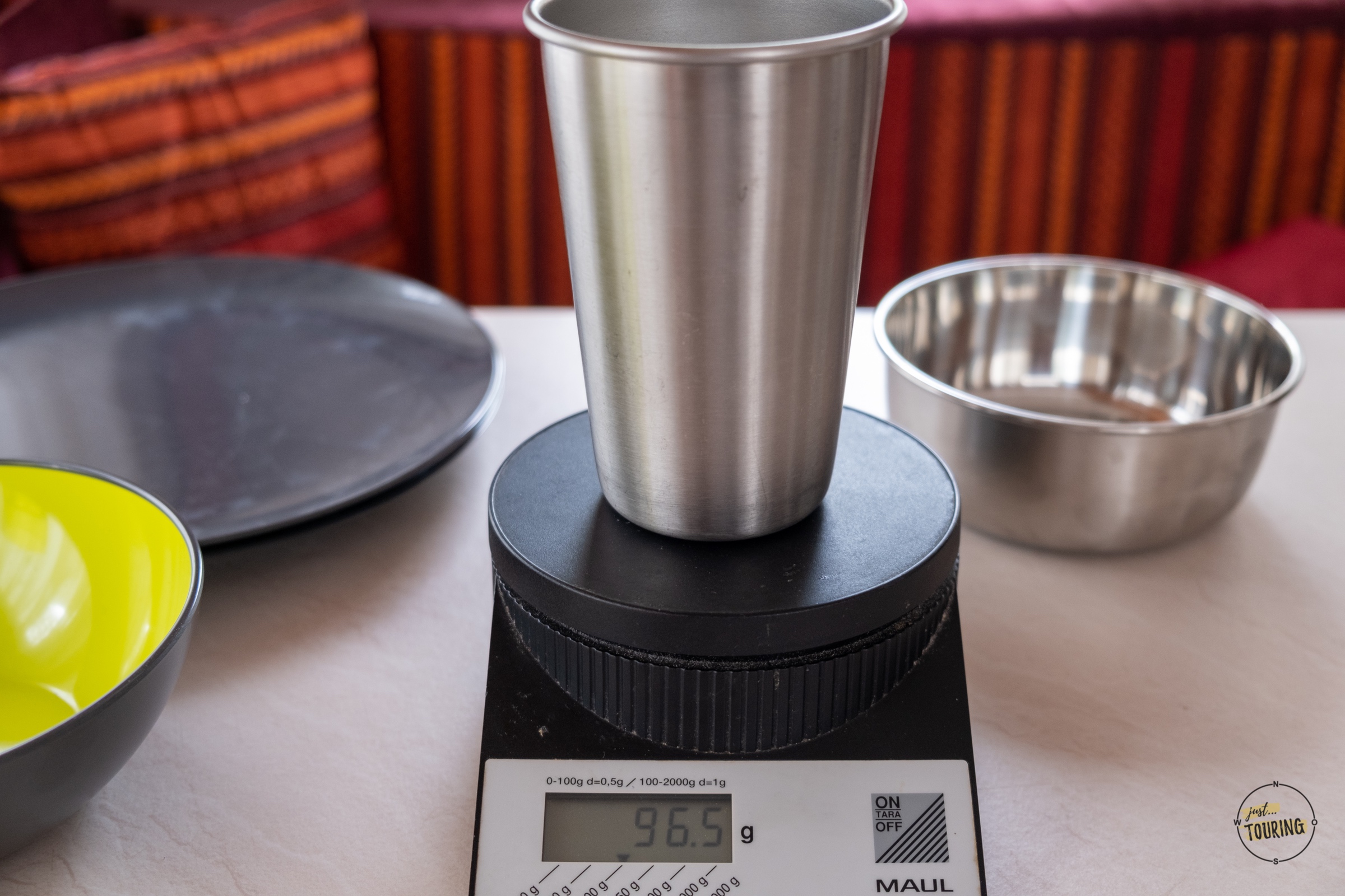 Eine komplette Umstellung auf Edelstahl hatten wir bislang nicht in Betracht gezogen, da wir immer dachten: Ach, das ist viel zu schwer! Bis wir zufällig mal etwas in einem Becher abgewogen haben und feststellten: Der Becher ist nicht schwerer, als das Glas aus Kunststoff. Bei den Tellern war es genauso.
