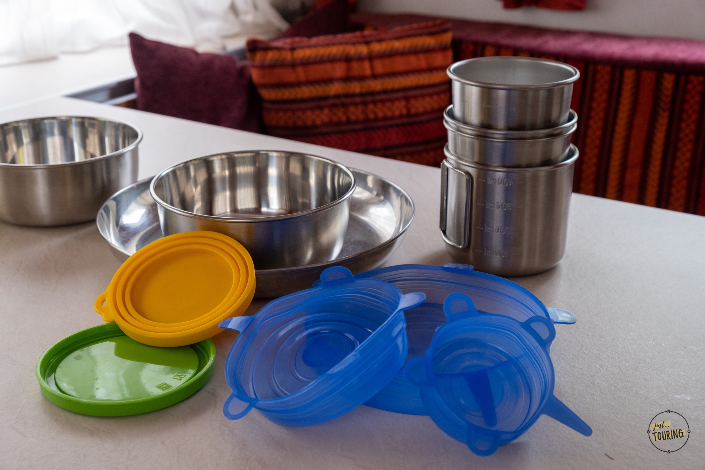 Wir haben in unserer Campingküche von Melamin- auf Edelstahlgeschirr umgestellt. Das hat vor allem praktische Gründe und wir möchten die Vorteile nicht mehr missen. Dazu gehören z.B. die Vielseitigkeit und dass es eine Möglichkeit gibt, sie mit passenden Deckeln leicht zu verschließen.