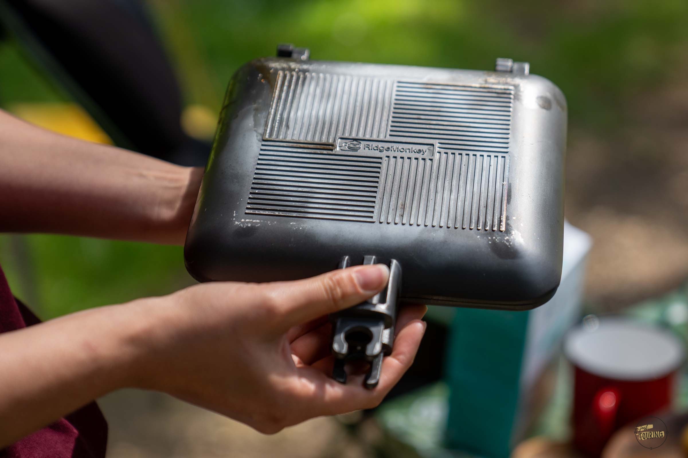Der RidgeMonkey ist zerlegbar, d.h. die zwei Pfannen kรถnnen auch einzeln genutzt werden. Das ist sehr praktisch – bei uns vor allem fรผr anstehende Kanutouren… ๐